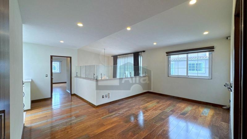 En planta alta: Al subir se puede observar la gran iluminación de las escaleras gracias a la luz natural que entra a través del domo. Más adelante encontramos la estancia familiar con vista al jardín lo que hará de tu descanso un momento muy cómodo y tranquilo.