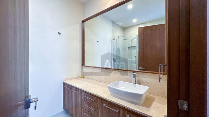 Planta baja: Estacionamiento techado para dos autos. Al ingresar, encontramos un estudio, ½ de baño de visitas, un poco más adelante podemos apreciar la iluminación natural propia de la casa que le genera una gran amplitud a la zona de la sala. Sala dispuesta en doble altura y posteriormente tenemos un clóset de visitas, seguido el área de comedor con salida al jardín. Al fondo tenemos la cocina equipada con desayunador, barra de servicio, terraza y vista al jardín. Por último se puede apreciar alacena y área de servicio con baño completo, bodega. El jardín con más de 35m2 con asador, que será tu mejor aliado para tus reuniones.