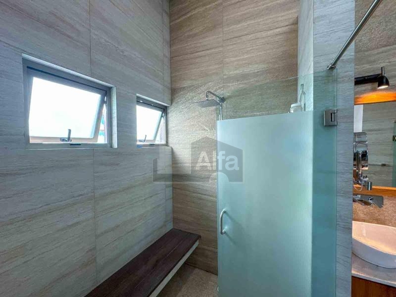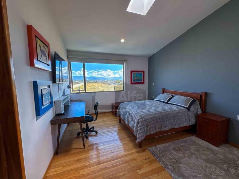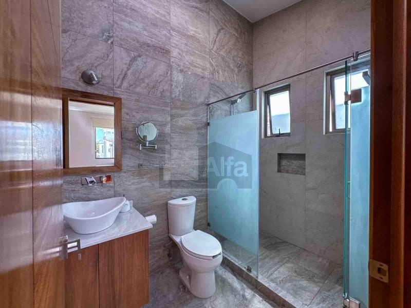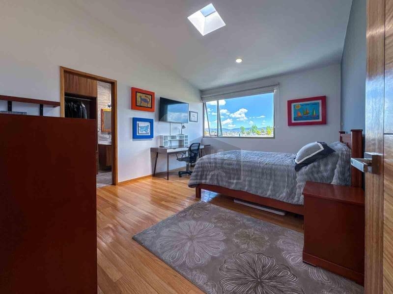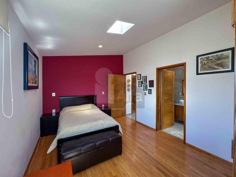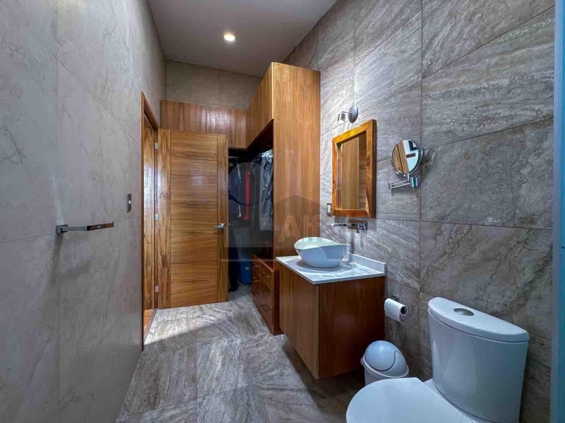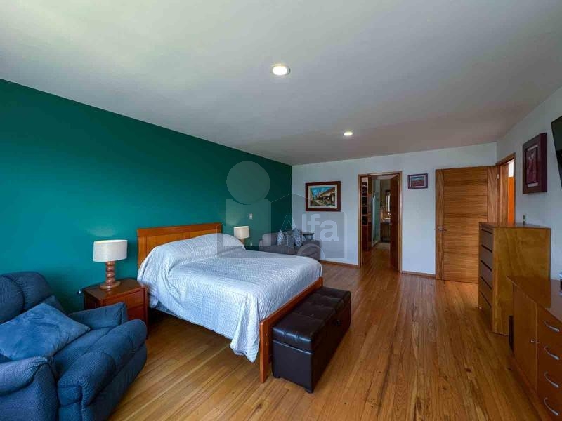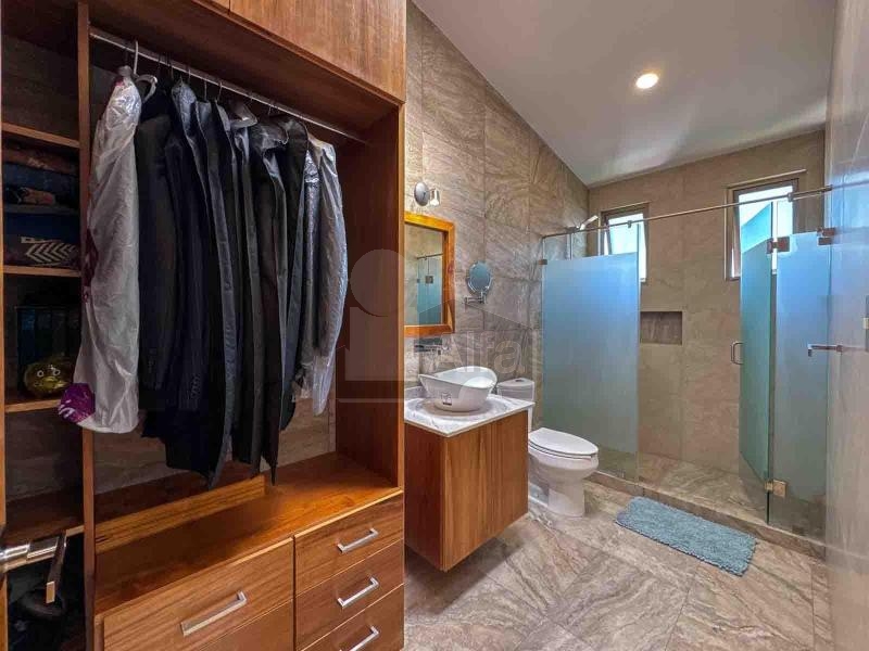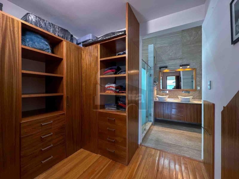 Habitación principal muy amplia con sala anexa, área de lectura, zona de walkin clóset co variedad de espacios de guardado. Baño con capacidad para 3 pasajeros, doble tarja, con buena ventilación e iluminación.